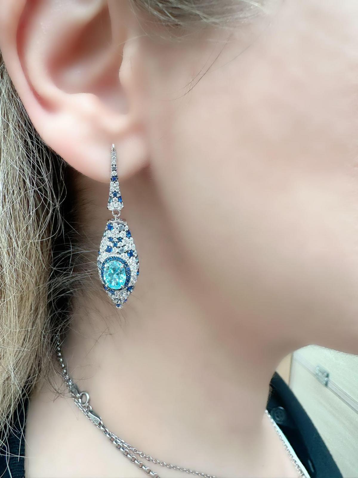 Akuamarin Taşlı Sallantılı Küpe