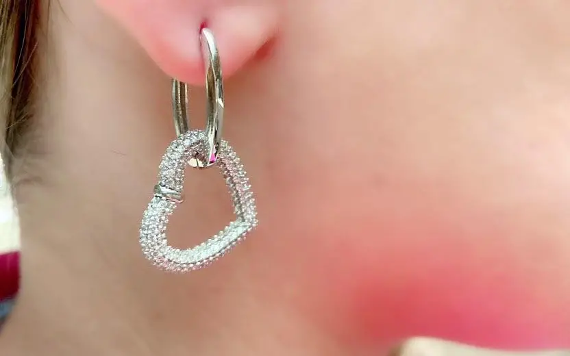 Beyaz Zirkon Taşlı Kalp Küpe