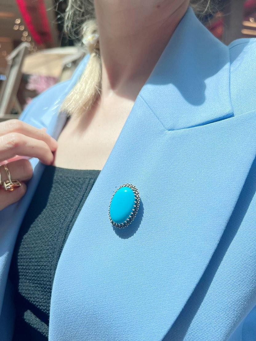 Ortası Turkuaz Taşlı Kenarları Markazit Taşlı Broş
