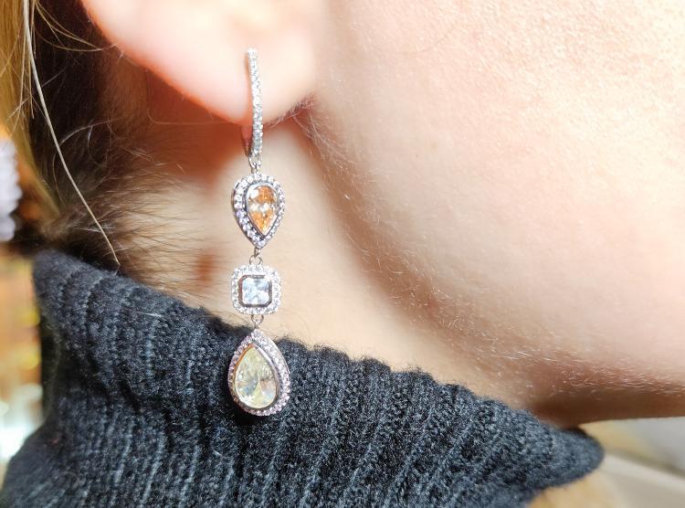 Renkli Taşlı Sallantılı Küpe
