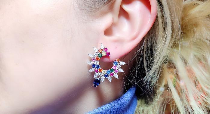 Renkli Zirkon Taşlı Tasarım Küpe