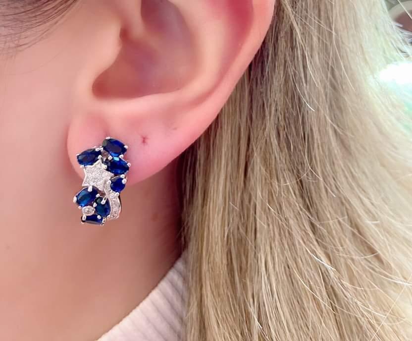Safir Taşlı Yıldız Desen Küpe