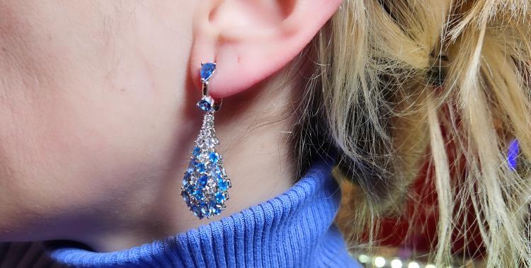 Turkuaz Taşlı Sallantılı Küpe