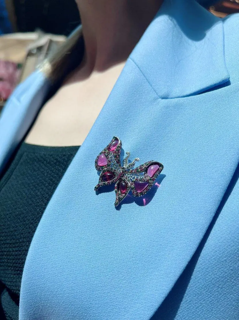 Yakut Taşlı Kelebekli Broş