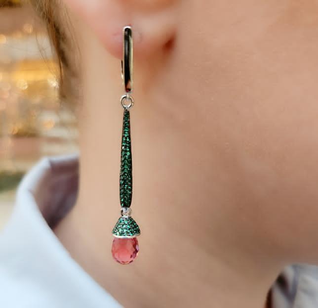 Yeşil Zirkon Taşlı Sallantılı Küpe