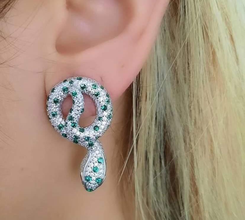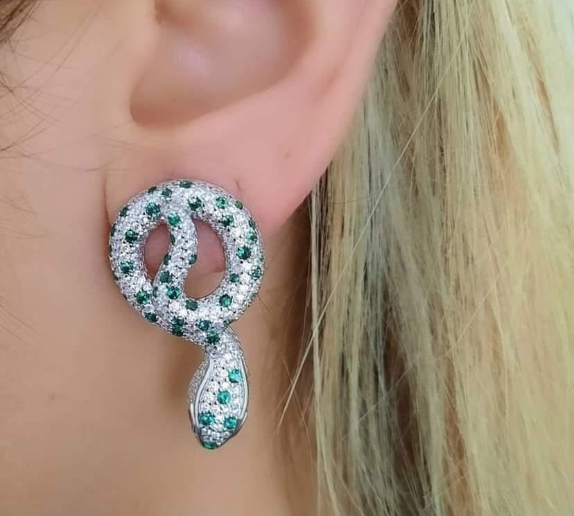 YEŞİL ZİRKON TAŞLI YILAN KÜPE