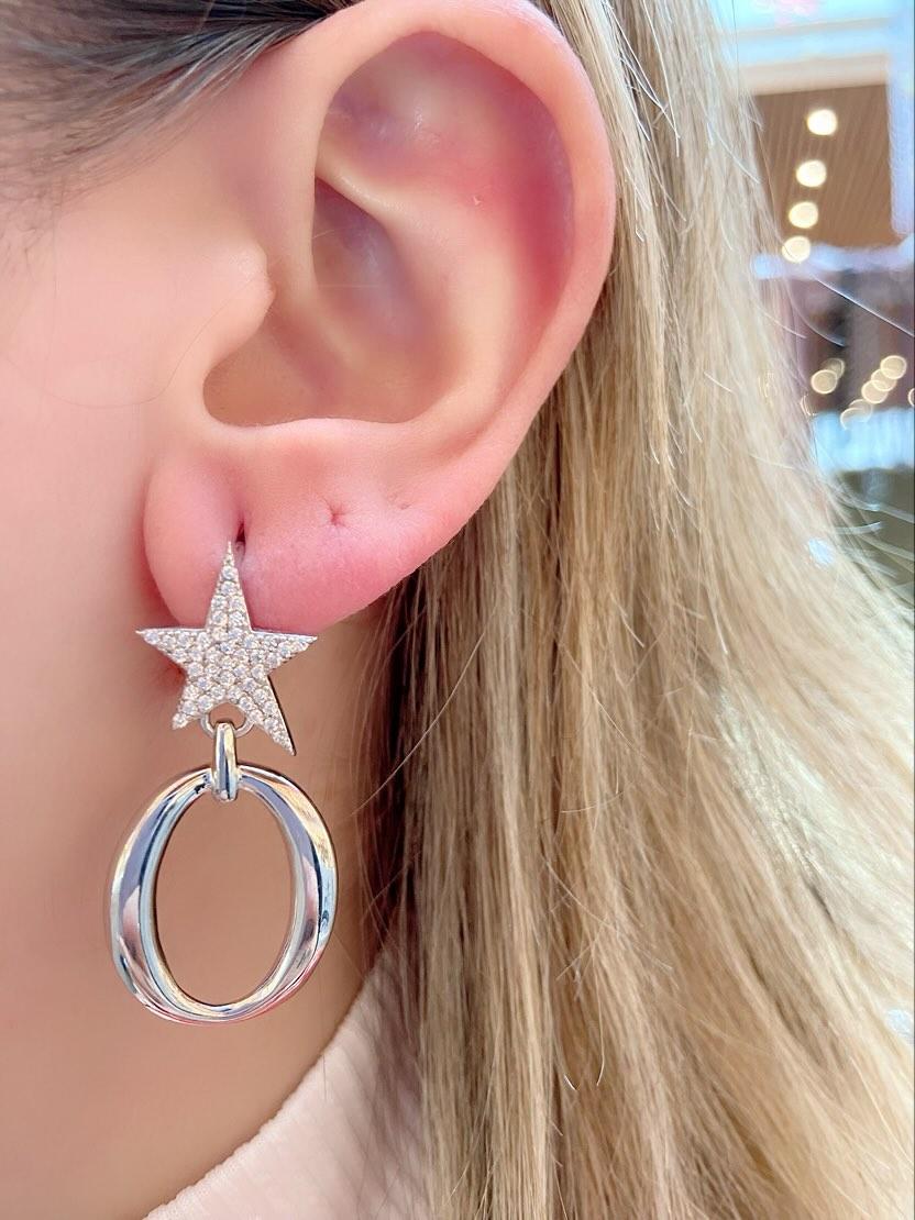 Zirkon Taşlı Yıldız Halka Küpe