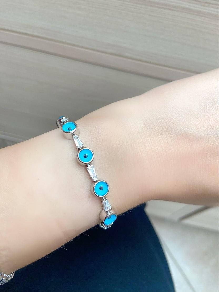 Ürün 925 Ayar Gümüştür. Bileklik uzunluğu 20 cmUzun süre rengini koruması için her türlü kimyasal ile temasından kaçınılmalıdır.