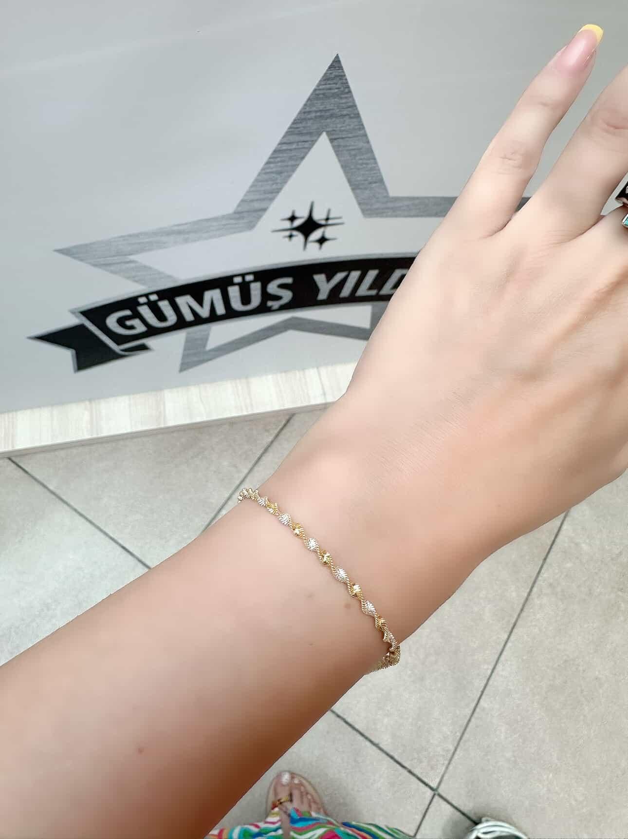 Ürün 925 Ayar Gümüştür.Bileklik uzunluğu 19 cm'dir.Uzun süre rengini koruması için her türlü kimyasal ile temasından kaçınılmalıdır.
