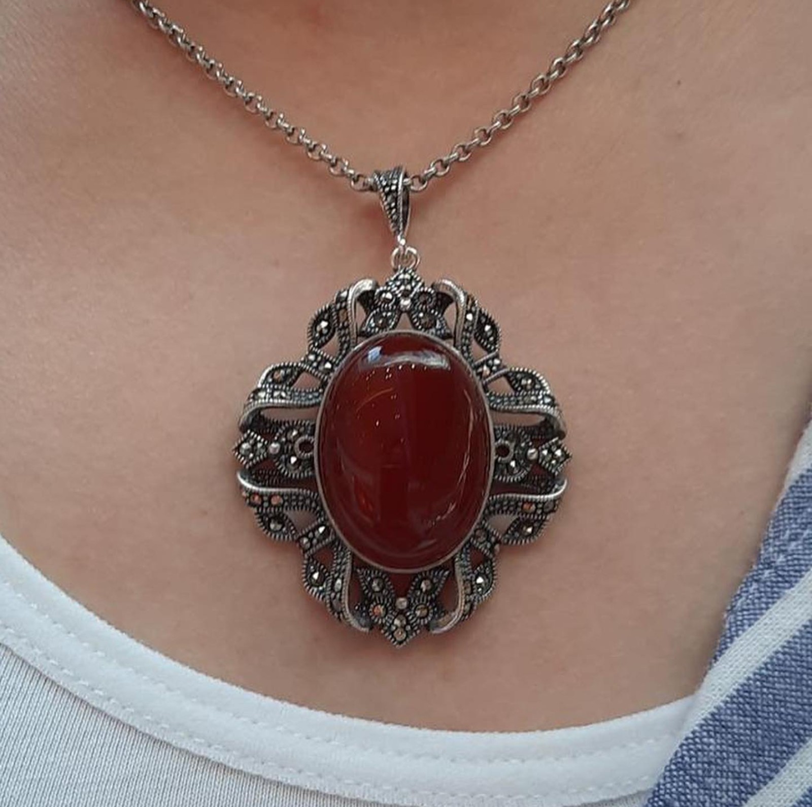 AKİK VE MARKAZİT TAŞLI KOLYE