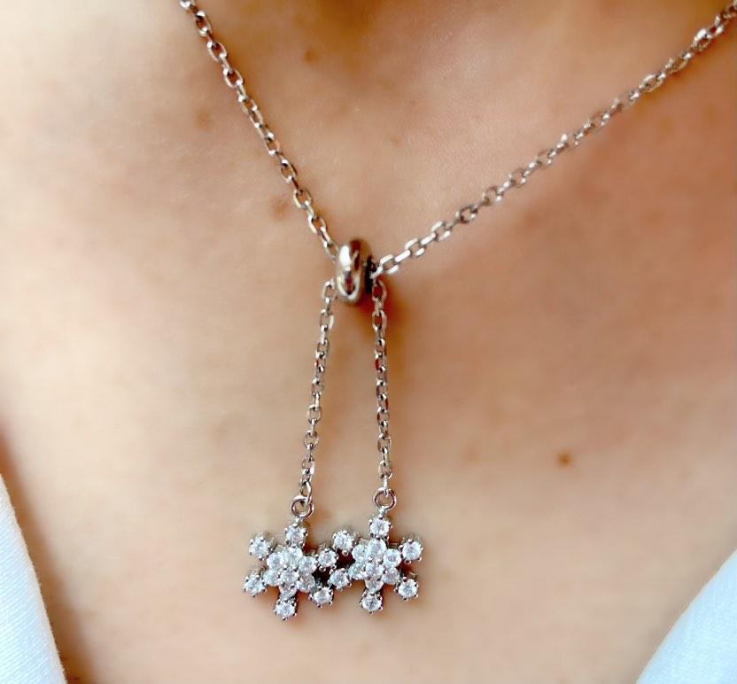 Ürün 925 Ayar Gümüştür.Zincir uzunluğu 45 cm'dir.Uzun süre rengini koruması için her türlü kimyasal ile temasından kaçınılmalıdır.