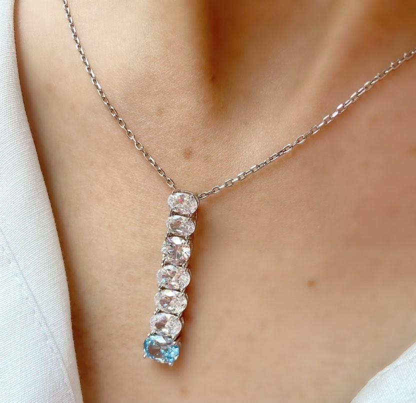 Beyaz Zirkon Taşlı Ve Akua Marin Taşlı Kolye