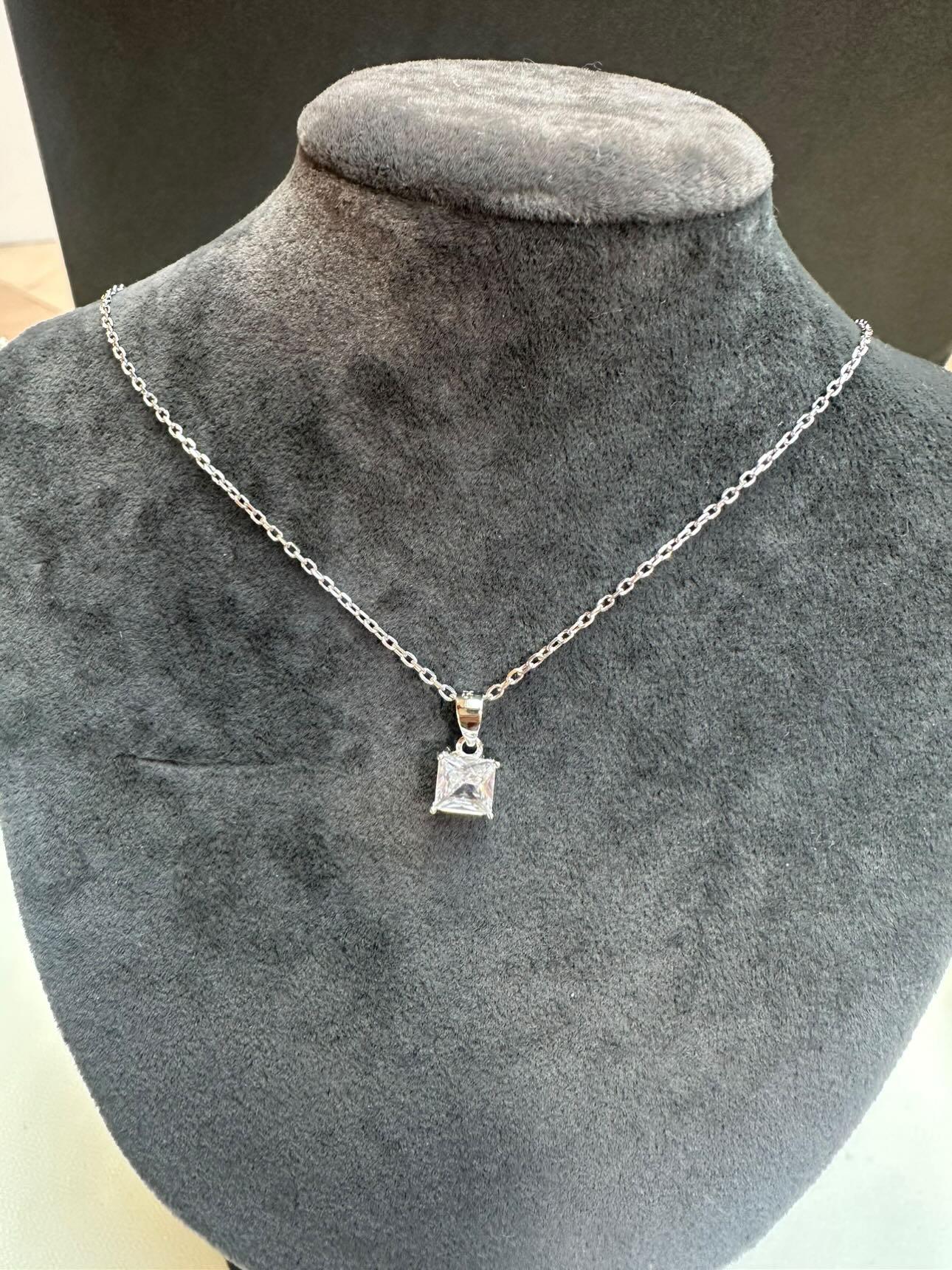 Kare Tek Taş Kolye