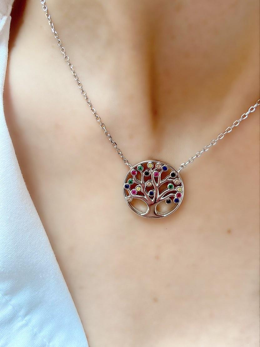 Renkli Taşlı Hayat Ağacı Kolye