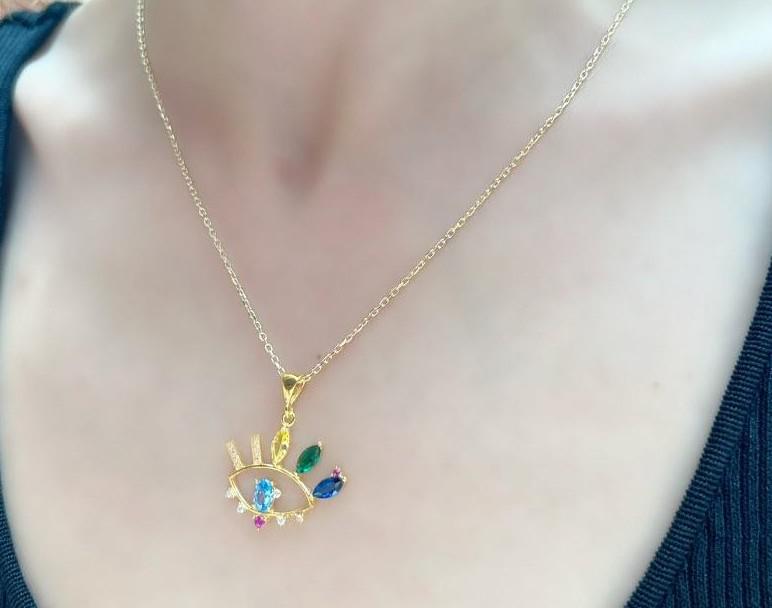 Renkli Zirkon Taşlı Göz Kolye