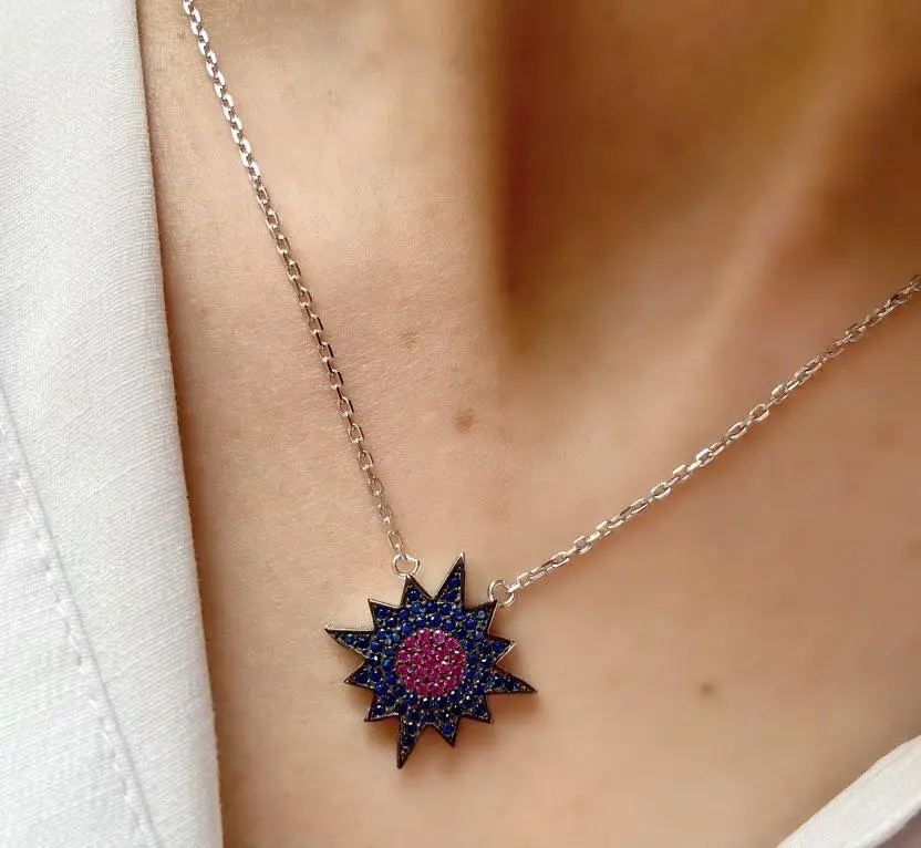 Renkli Zirkon Taşlı Kutup Yıldızı Kolye