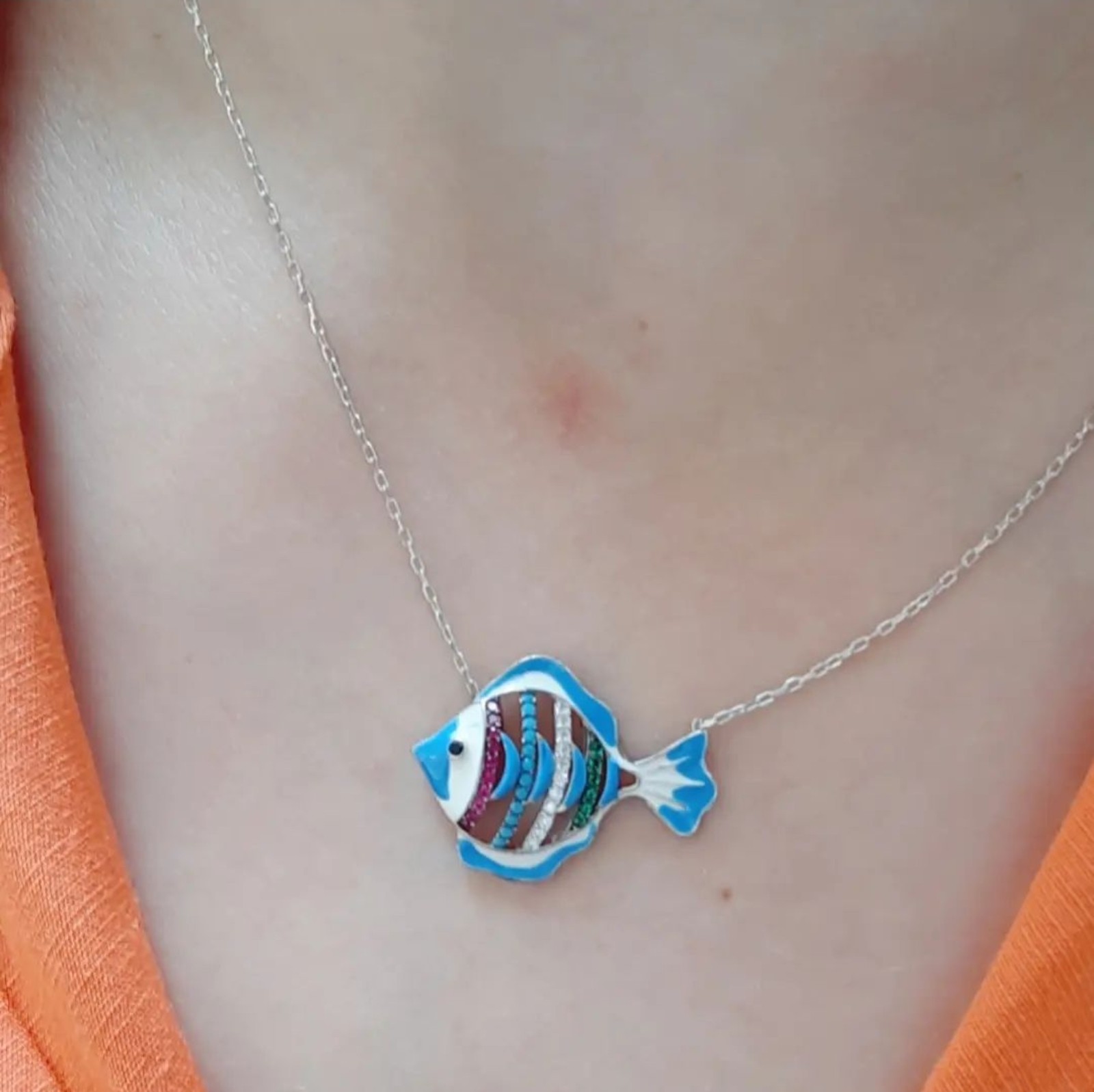 ZİRKON TAŞLI BALIK KOLYE