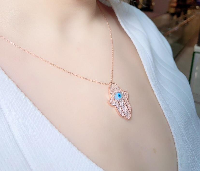 Zirkon Taşlı Fatma Ana Eli Kolye